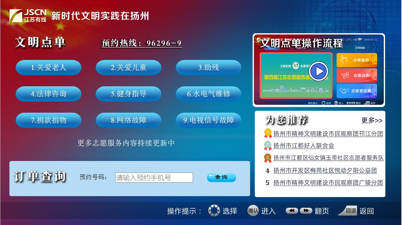平臺在實現智能化、信息化電視信息發布功能的同時,創新研發志愿服務需求采集平臺,通過與揚州廣電數字電視及96296服務熱線的有效結合,實現群眾點單、志愿者接單的志愿服務功能,為開展全覆蓋、分眾化、菜單式的文明實踐志愿服務活動、打通服務群眾“最后一公尺”提供了新途徑。